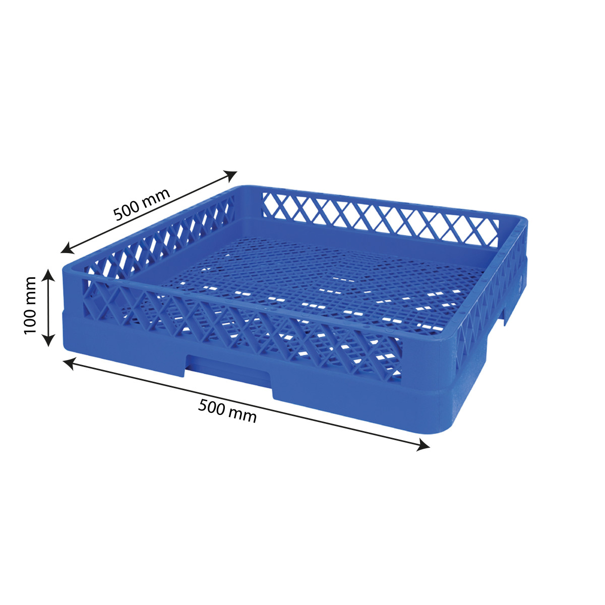 Format standard : 500 x 500 x 100 mm. Compatible avec les lave-vaisselles à capot ou à tunnel.